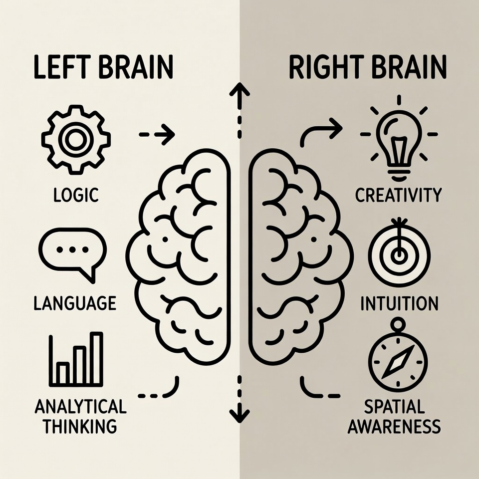 +Simple infographic illustrating left/right brain coordination: