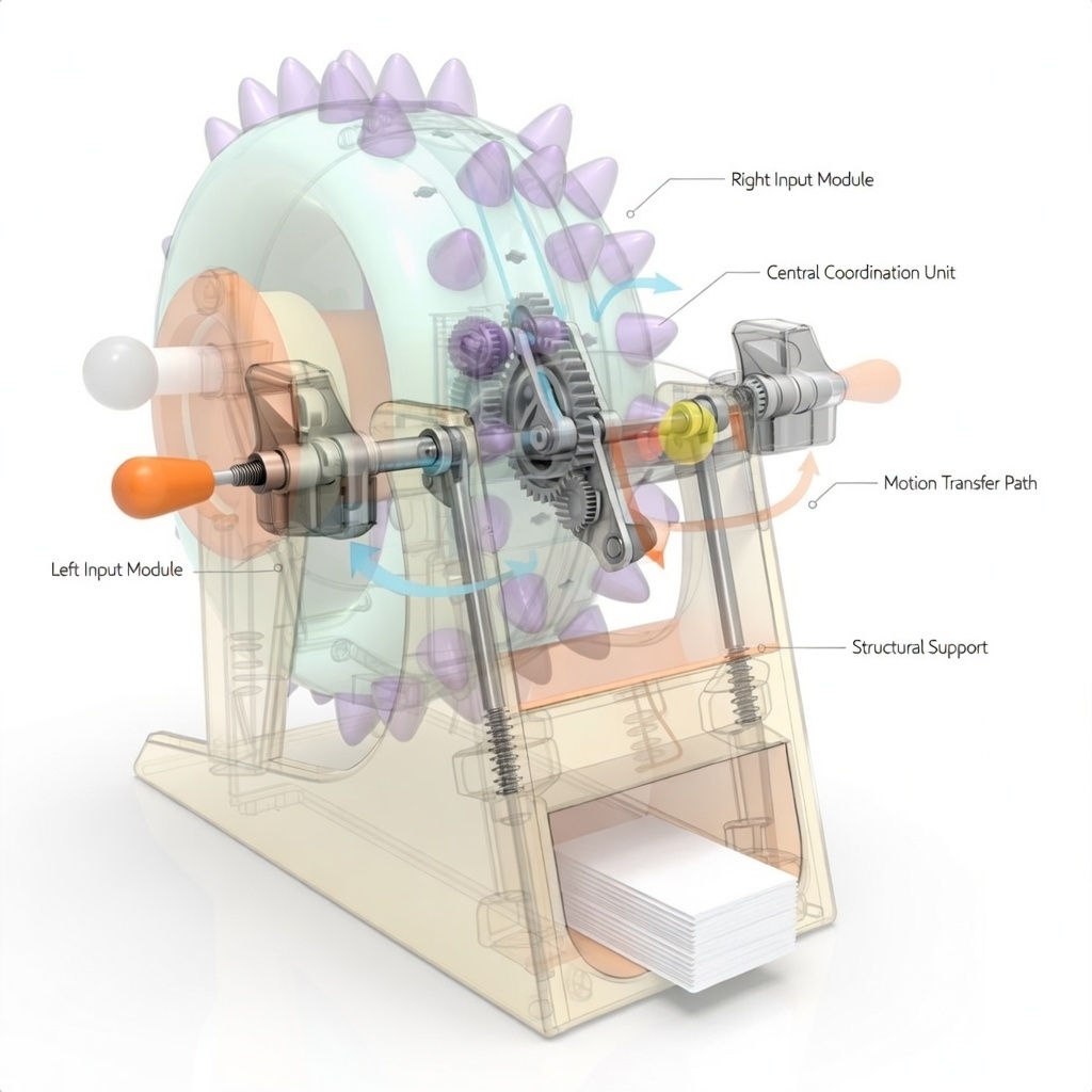 After concept filtering, a structured dual-control mechanism was selected to ensure simultaneous motor engagement.